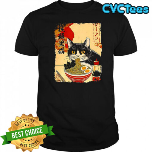 Black cat eats ramen Japanese ukiyo-e retro shirt, hoodie, sweater, longsleeve and ladies t-shirt