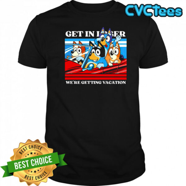 Bluey and friends get in loser we’re getting vacation cartoon shirt, hoodie, sweater, longsleeve and ladies t-shirt