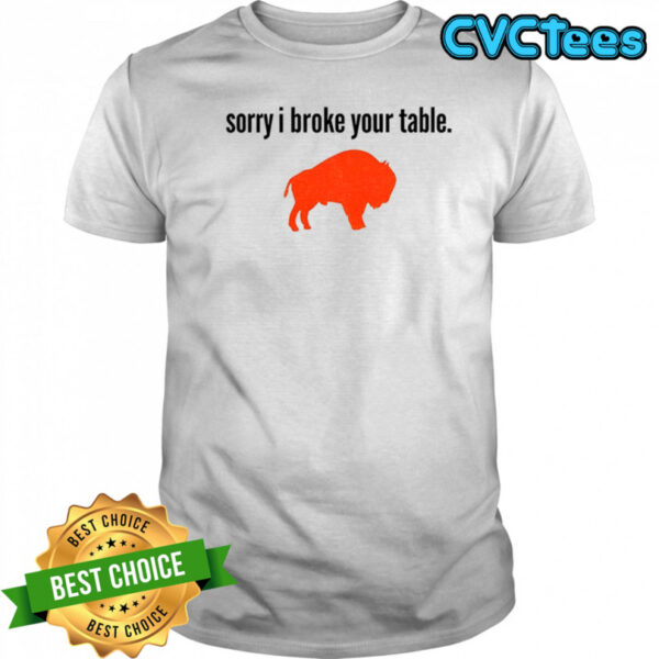Buffalo Bills sorry I broke your table NFL Football 2025 shirt, hoodie, sweater, longsleeve and ladies t-shirt