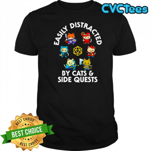 Cats easily distracted by cats and side quests shirt, hoodie, sweater, longsleeve and ladies t-shirt