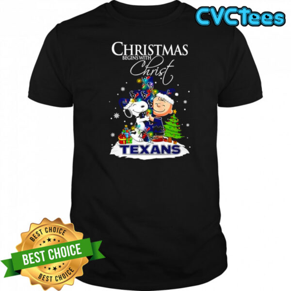 Christmas begins with Christ Houston Texans x Snoopy and Charlie Brown shirt, hoodie, sweater, longsleeve and ladies t-shirt
