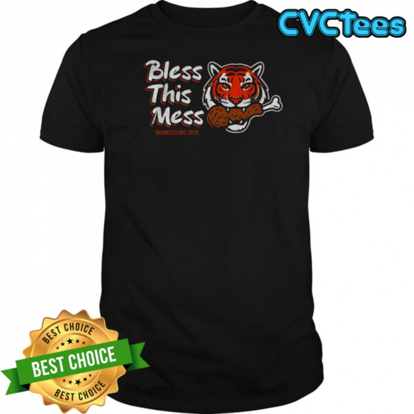 Looking for a unique way to commemorate Thanksgiving 2025? Look no further than the Cincinati Tigers bless this mess Thanksgiving 2025 shirt. This exclusive shirt is not just a piece of clothing; it’s a statement. Imagine the comfort of the soft fabric adorned with a vibrant and eye-catching design that celebrates the essence of Thanksgiving and the spirit of the Cincinati Tigers. Whether you’re gathered around the table with loved ones or out and about spreading holiday cheer, this shirt is your perfect companion. Let your outfit speak volumes as you showcase your love for this special holiday and your favorite team.