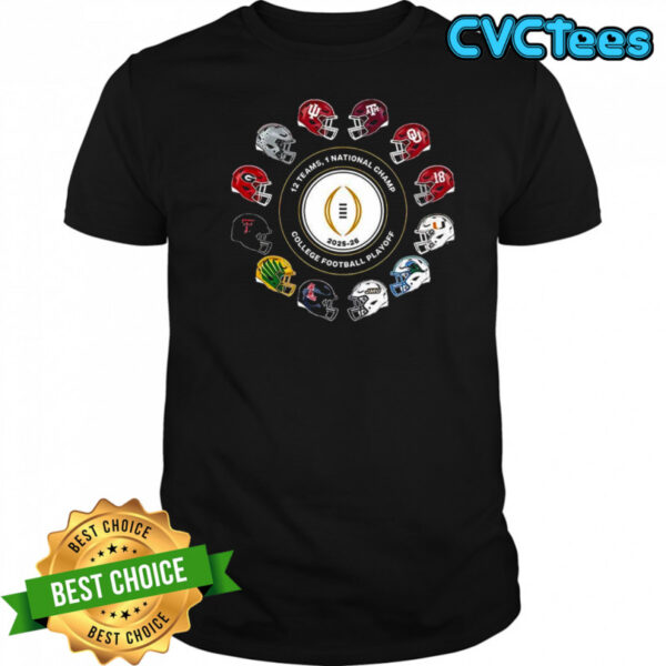 College Football Playoff 2025-2026 12 Teams 1 National Champ helmet shirt, hoodie, sweater, longsleeve and ladies t-shirt