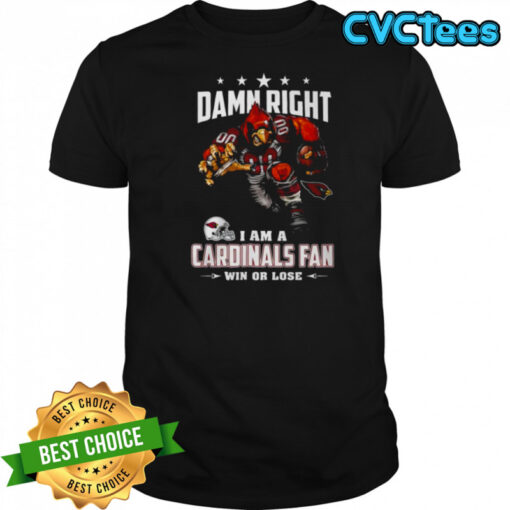 Damn Right I Am A Cardinals Fan Win Or Lose T Shirt, hoodie, sweater, longsleeve and ladies t-shirt