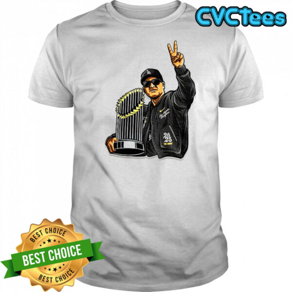 Unleash your passion for baseball with the Dave Roberts holding world series trophy Fingers Up shirt! This iconic shirt captures the exhilarating moment when Dave Roberts proudly raised the World Series trophy with fingers pointing upwards in victory. The design is a celebration of triumph, resilience, and the sheer joy of winning. Made from premium quality, soft cotton, this shirt ensures comfort while you relive that unforgettable championship moment. Whether you’re a die-hard Dodgers fan or simply appreciate the spirit of sportsmanship, this shirt is a must-have for your collection.
