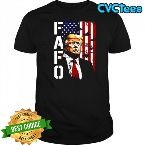 Donald Trump FAFO American flag fighter jet silhouette shirt, hoodie, sweater, longsleeve and ladies t-shirt