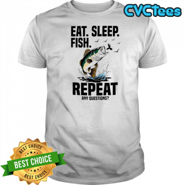Eat. Sleep. Fish. Repeat. Any Questions graphic shirt