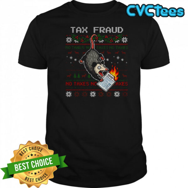 Funny Opossum Tax Fraud No Taxes Merry Christmas shirt, hoodie, sweater, longsleeve and ladies t-shirt