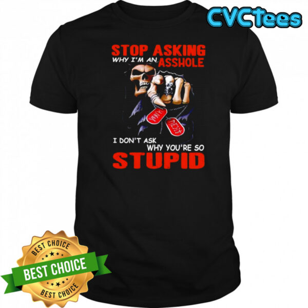 Grim Reaper Stop asking why I’m an asshole I don’t ask why you’re so stupid shirt, hoodie, sweater, longsleeve and ladies t-shirt