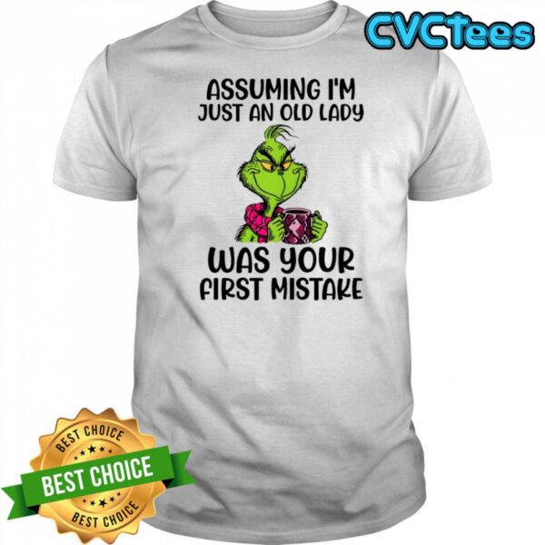 Grinch assuming i’m just an old lady was your first mistake shirt, hoodie, sweater, longsleeve and ladies t-shirt
