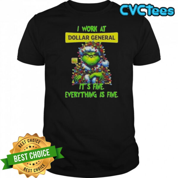 Grinch Christmas Tree X Dollar General I Work At It’s Fine Everything Is Fine T-Shirt