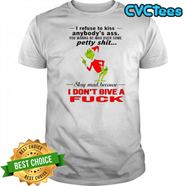 Grinch Dr. Seuss i refuse to kiss anybody’s ass stay mad because i don’t give a fuck shirt, hoodie, sweater, longsleeve and ladies t-shirt