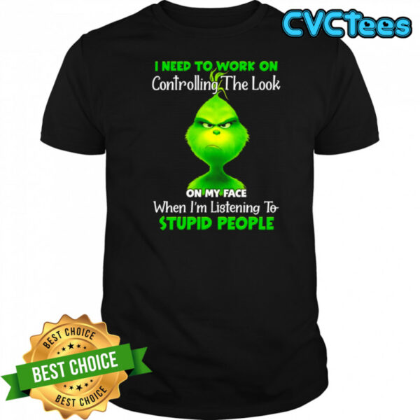 Grinch i need to work on controlling the look on my face when i’m listening to stupid people shirt, hoodie, sweater, longsleeve and ladies t-shirt