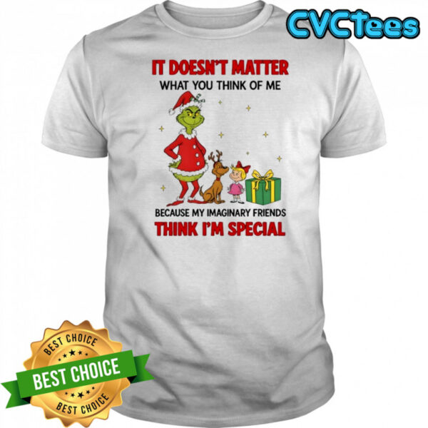 Grinch It doesn’t matter what you think of me because my imaginary friends think i’m special shirt, hoodie, sweater, longsleeve and ladies t-shirt