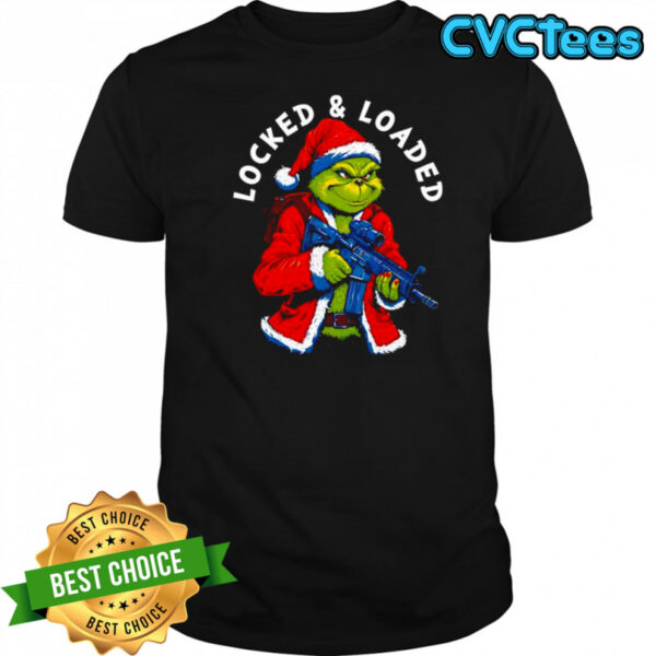 Grinch Santa suit Rifle Locked & Loaded shirt, hoodie, sweater, longsleeve and ladies t-shirt