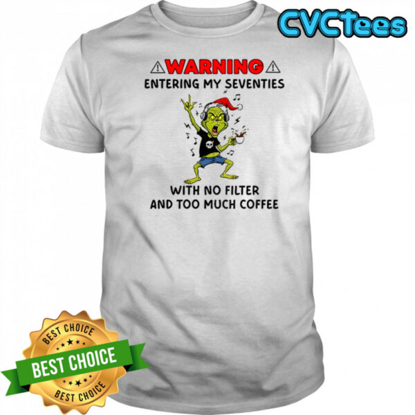 Grinch Santa warning entering my seventies with no filter shirt, hoodie, sweater, longsleeve and ladies t-shirt