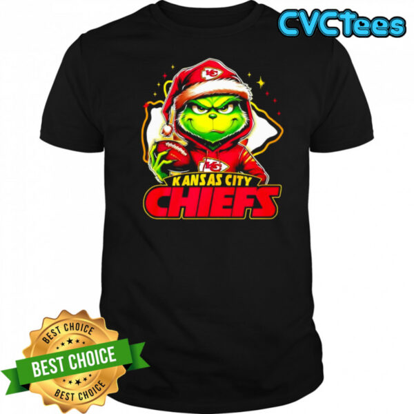 Grinch wearing Santa x Kansas City Chiefs hat Christmas shirt, hoodie, sweater, longsleeve and ladies t-shirt