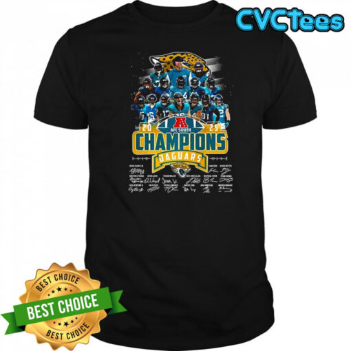 Jacksonville Jaguars AFC South 2025 Champions player college name and signature shirt, hoodie, sweater, longsleeve and ladies t-shirt