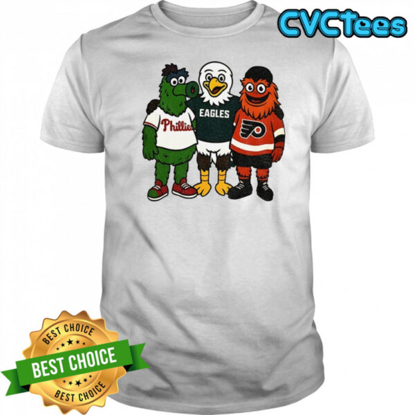 Phillie Phanatic Swoop and Gritty Philadelphia Phillies Eagles Flyers shirt