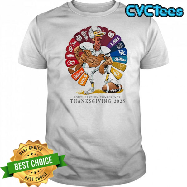Get ready to show off your team spirit in style this Thanksgiving with our exclusive Southeastern Conference Thanksgiving 2025 turkey sport teams shirt. Designed for true sports enthusiasts, this shirt combines comfort and team pride effortlessly. Crafted from premium materials, this shirt ensures a soft touch against your skin while you cheer on your favorite team during the holiday season. The vibrant colors and unique turkey sport teams design make this shirt a standout piece for any fan looking to celebrate Thanksgiving in a sporty and festive way. Stand out from the crowd and let your passion for your team shine through with this one-of-a-kind shirt.